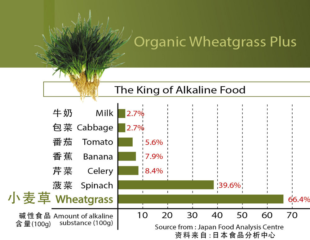【有机小麦草】与食物在胃里一起被吸收和消化, 长达2至4小时。 - Organic Wheatgrass Plus rapidly neutralizes the chemicals in the food you consume, flushes the harmful toxins from your body and reduces the risk of modern lifestyle diseases.